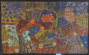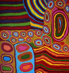 Casseyanne is an emerging artist and the granddaughter of senior Pitjantjatjara Elder and artist Maringka Baker. Her mother, Elaine Woods, is also a well-known painter. Casseyanne grew up surrounded by art, and her practice reflects this strong family influence. Along with her sisters, she is helping to carry their Dreaming stories forward.