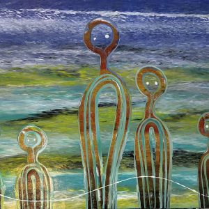 Fiona Omeenyo painting Australian Aboriginal Art. Titled : Ancestors of Land and Sea SOLD