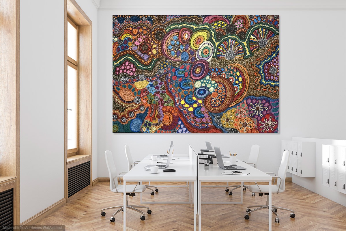 An amazing large painting by Damien and Yilpi Marks